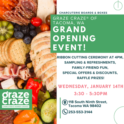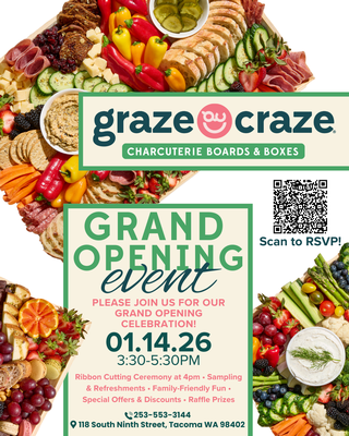 Join us at the ribbon cutting ceremony for Graze Craze! This is to celebrate its grand opening. Try your luck at some raffle prizes whilst eating charcuterie samples and touring the new space. Stick around after the ceremony until 5:30pm to enjoy more good eats!